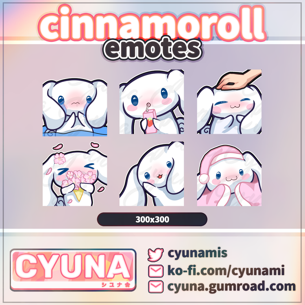 6 Emotes of Cinnamoroll from Sanrio for use on discord, twitch, youtube or any streaming plataform.