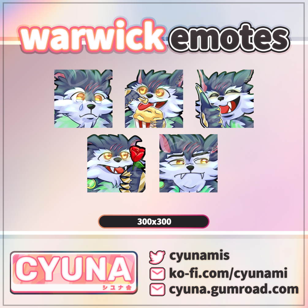 Emotes of Warwick from League of Legends for use on discord, twitch, youtube or any streaming plataform.